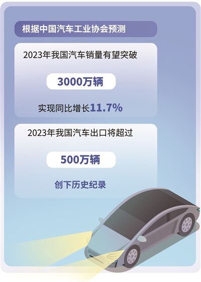 根据中国汽车工业协会预测,2023年我国汽车销量有望突破3000万辆,实现同比增长11.7%。2023年我国汽车出口将超过500万辆,创下历史纪录。