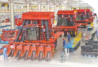“比如,杨发英家以前的农机,很多是进口货,现在他们可以买到高性价比的国产高端采棉机、大型拖拉机等。”李斌介绍,共青团农场农业机械的国产化率已经达到85%。五家渠市新疆天鹅现代农业机械装备有限公司生产的采棉机,一台约有10万个零部件,国产化率达到93%。兵团企业生产的农机畅销20多个省份,还销往国际市场。